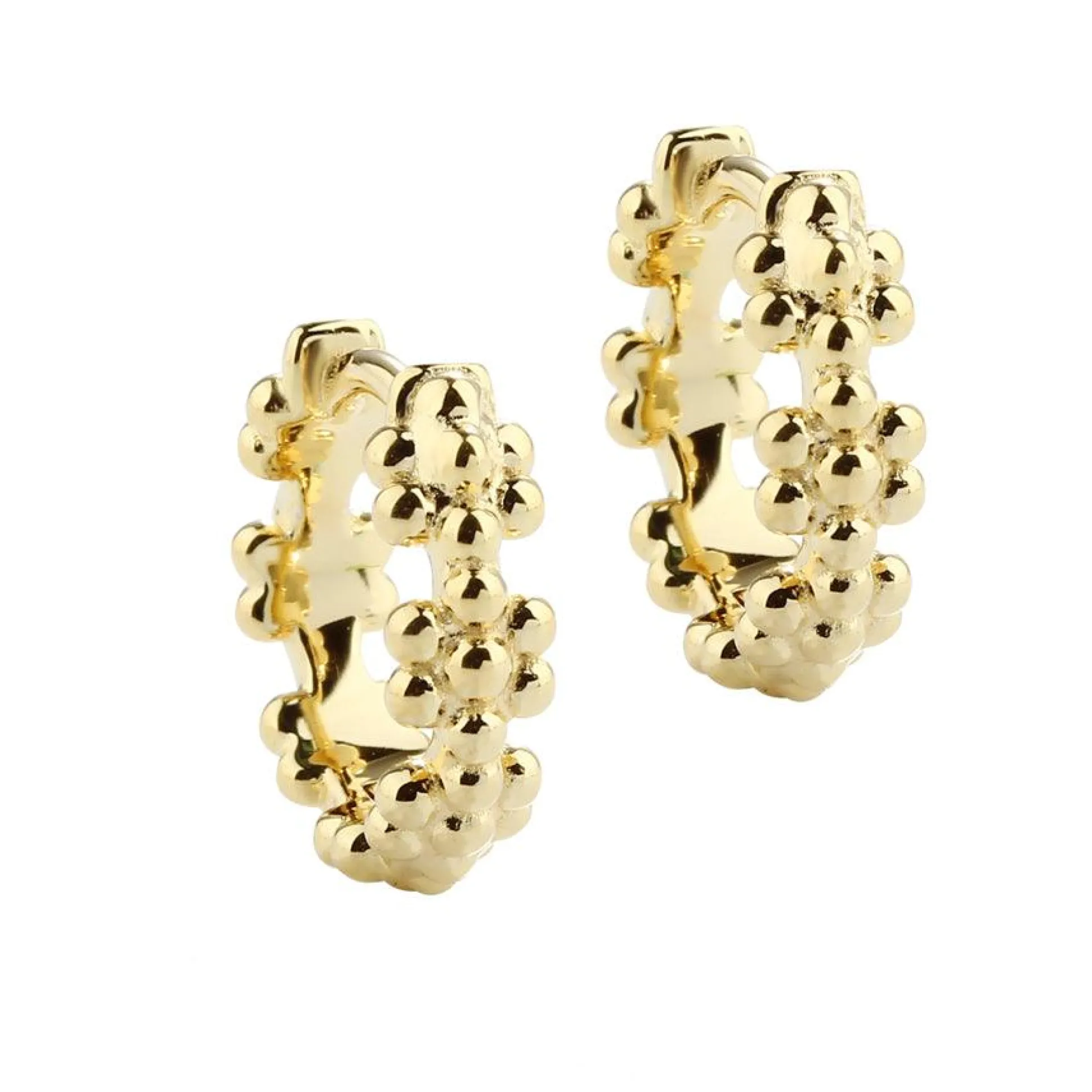 Aqua Dulce Lots Of Flowers Hoop er en fortryllende tilføjelse til din smykkesamling. Disse 15 mm hoop øreringe er forgyldt sterling sølv og prydet med et blomstermotiv, der tilføjer en fin og feminin touch til dit look.