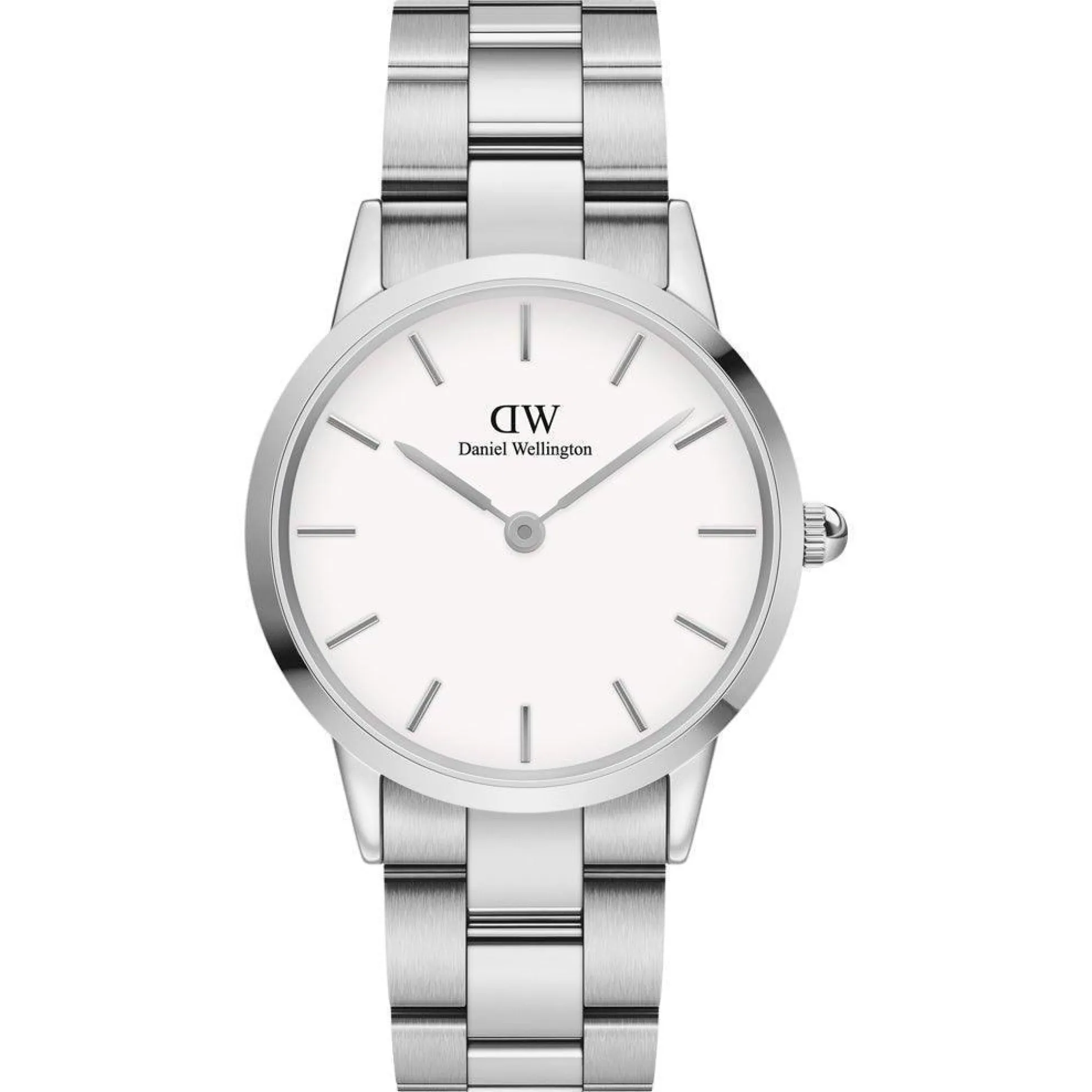 Flot og stilrent unisex ur fra Daniel Wellington Iconic Link serien, med hvid urskive og lækker rustik stål lænke.