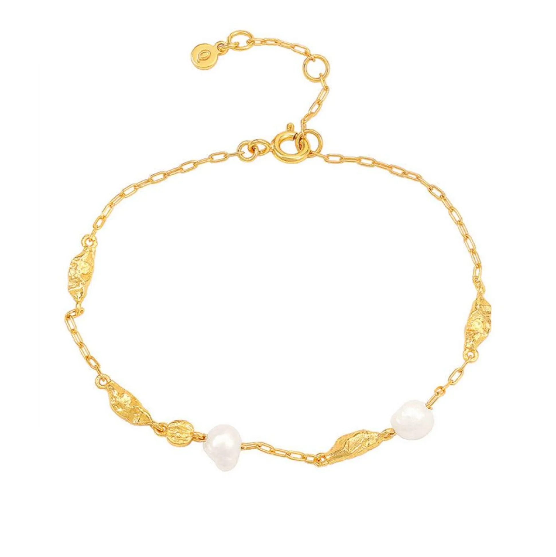Hazel armbåndet fra Hultquist er et smukt og delikat design, håndlavet i 18 karat forgyldt sterling sølv. Armbåndet er udstyret med hammerslåede led og små perler imellem, der giver en subtil, elegant glans og et unikt udtryk. Det justerbare design gør det let at tilpasse efter din håndledsstørrelse, hvilket giver både komfort og stil.