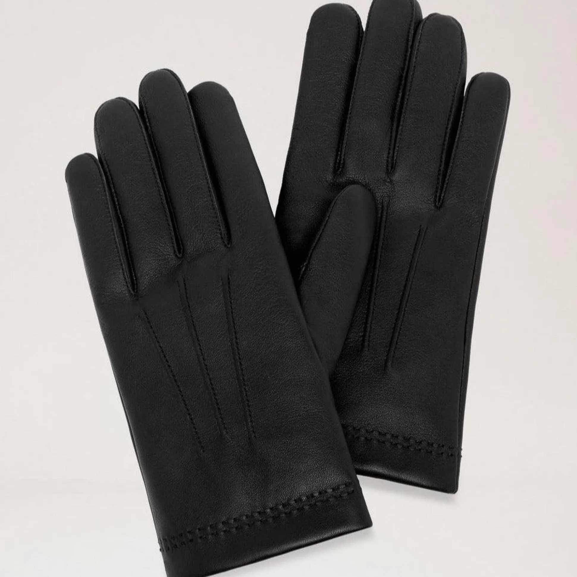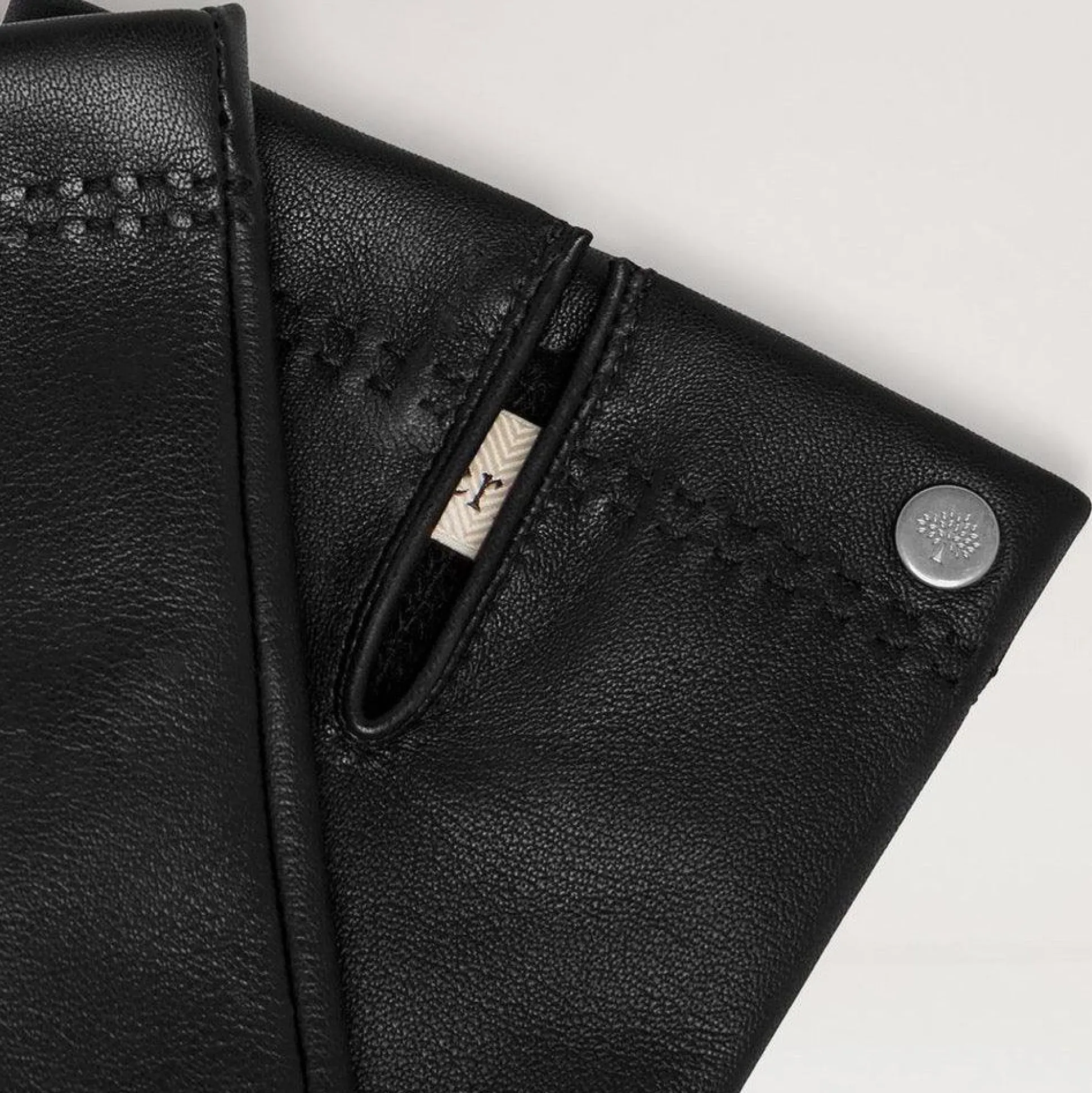Smuk og klassisk herre handske fra Mulberry i det blødeste læder. Mulberry træ logoet er fint påtrykt den lille sølv farvet knap. Handsken er foret med Cashmere.
