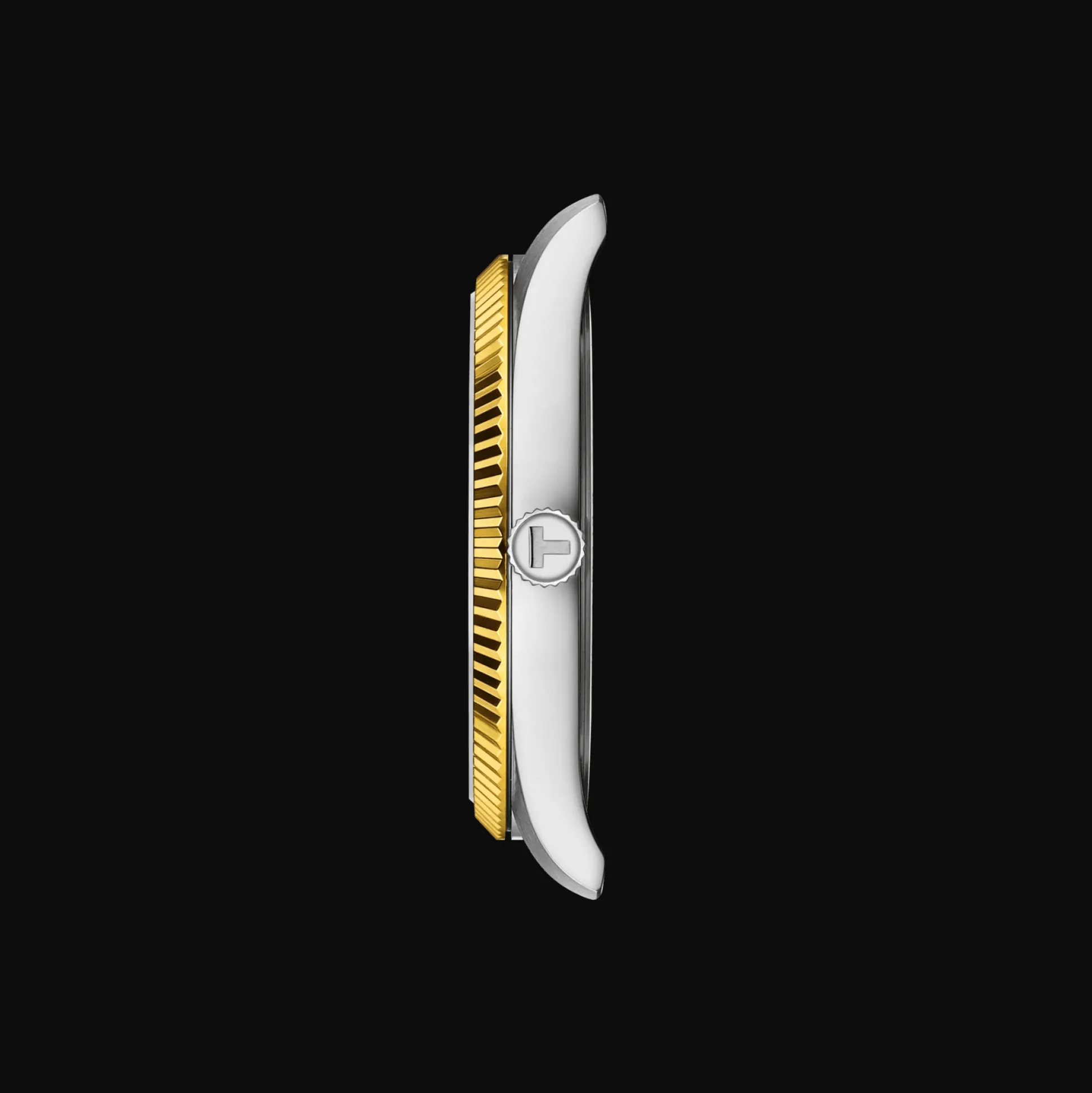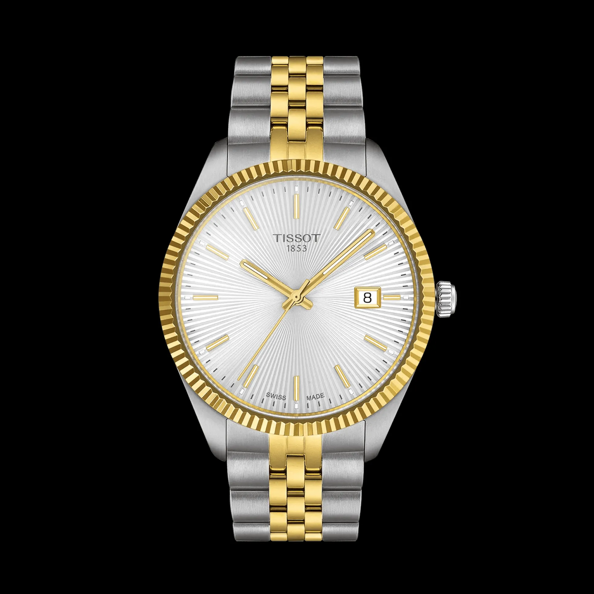 Tissot Ballade er en elegant og tidløs tilføjelse til enhver samling. Uret kombinerer moderne funktionalitet med klassisk design og er udstyret med en traditionel guilloché-skive og en sofistikeret rillet bezel. Den hurtigskiftende lænke gør det nemt at tilpasse uret til forskellige lejligheder, mens de gyldne PVD-detaljer tilfører et luksuriøst touch.