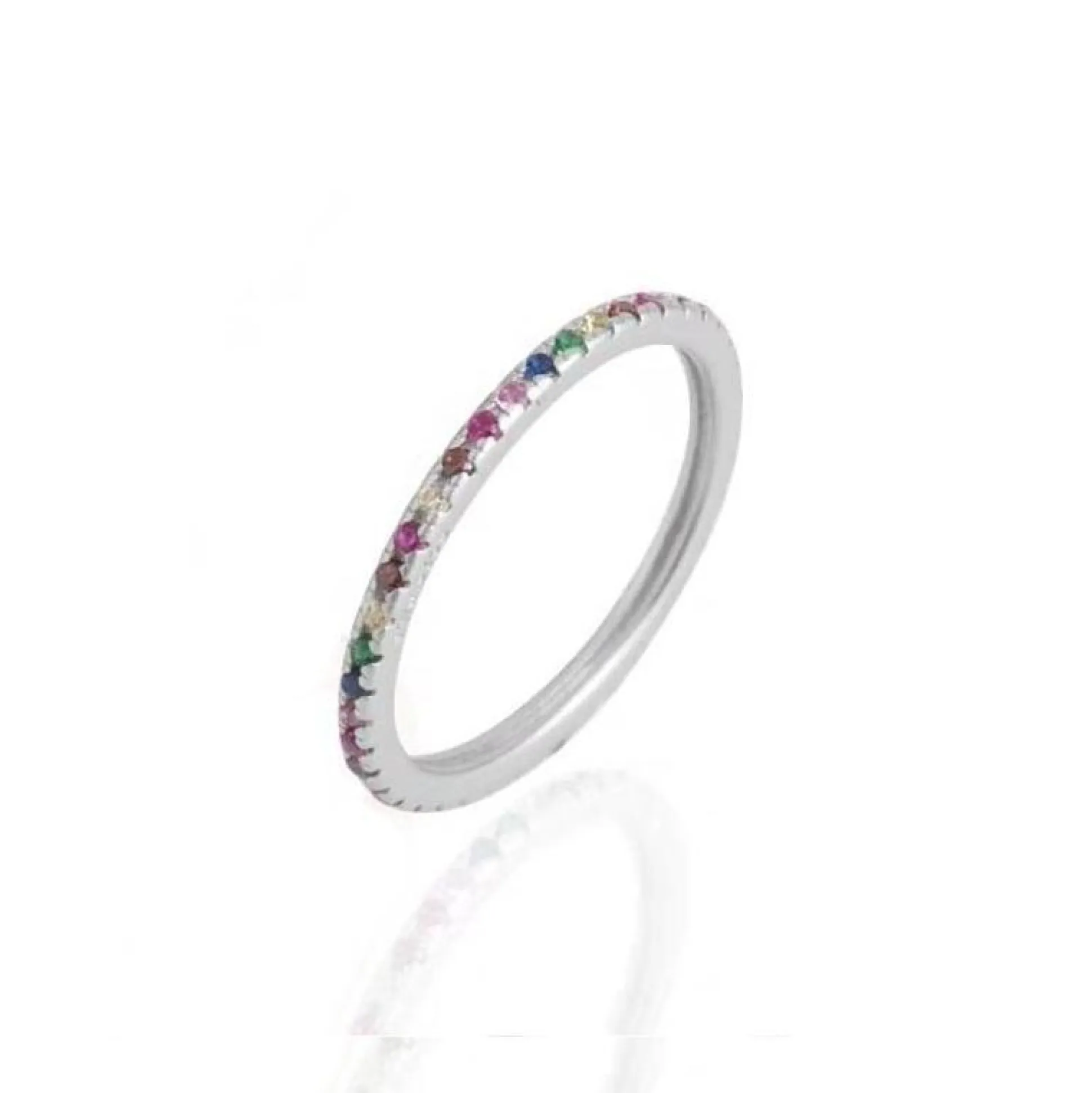 Enkelt og fin ring i sølv fra Wioga med zirkonia sten i et smukt farve mix. Ringen er nem at style med andre ringe.