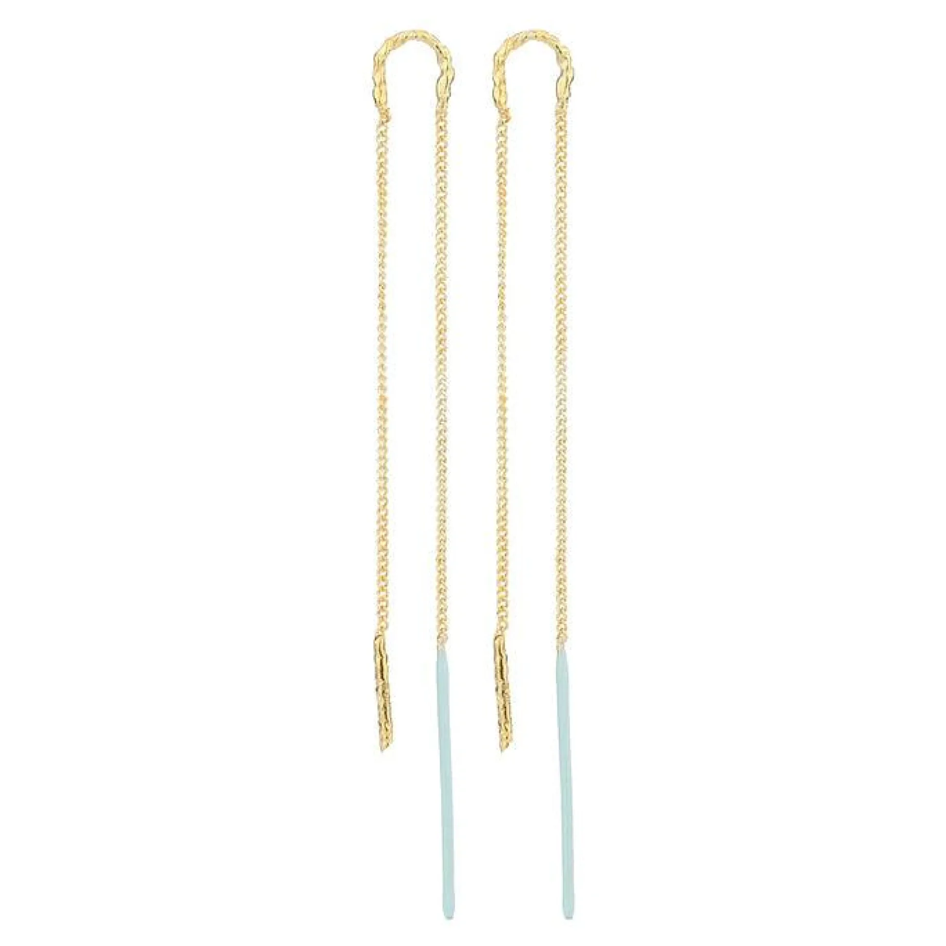 Vinja øreringene i forgyldt sølv fra Wioga er en helt enkelt kædeørering med en pistacie farvet emalje i enderne.