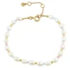 Sødt og feminint armbånd i forgyldt sølv med ferskvandsperler og pastel farver fra Hultquist Copenhagen.